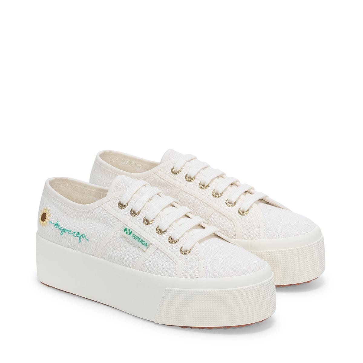 Elevate your everyday style with the Superga 2790 Platform Linen Embroidery Sunflower. This statement sneaker features a breathable linen upper adorned with delicate sunflower embroidery, bringing a fresh, summery feel to your look.